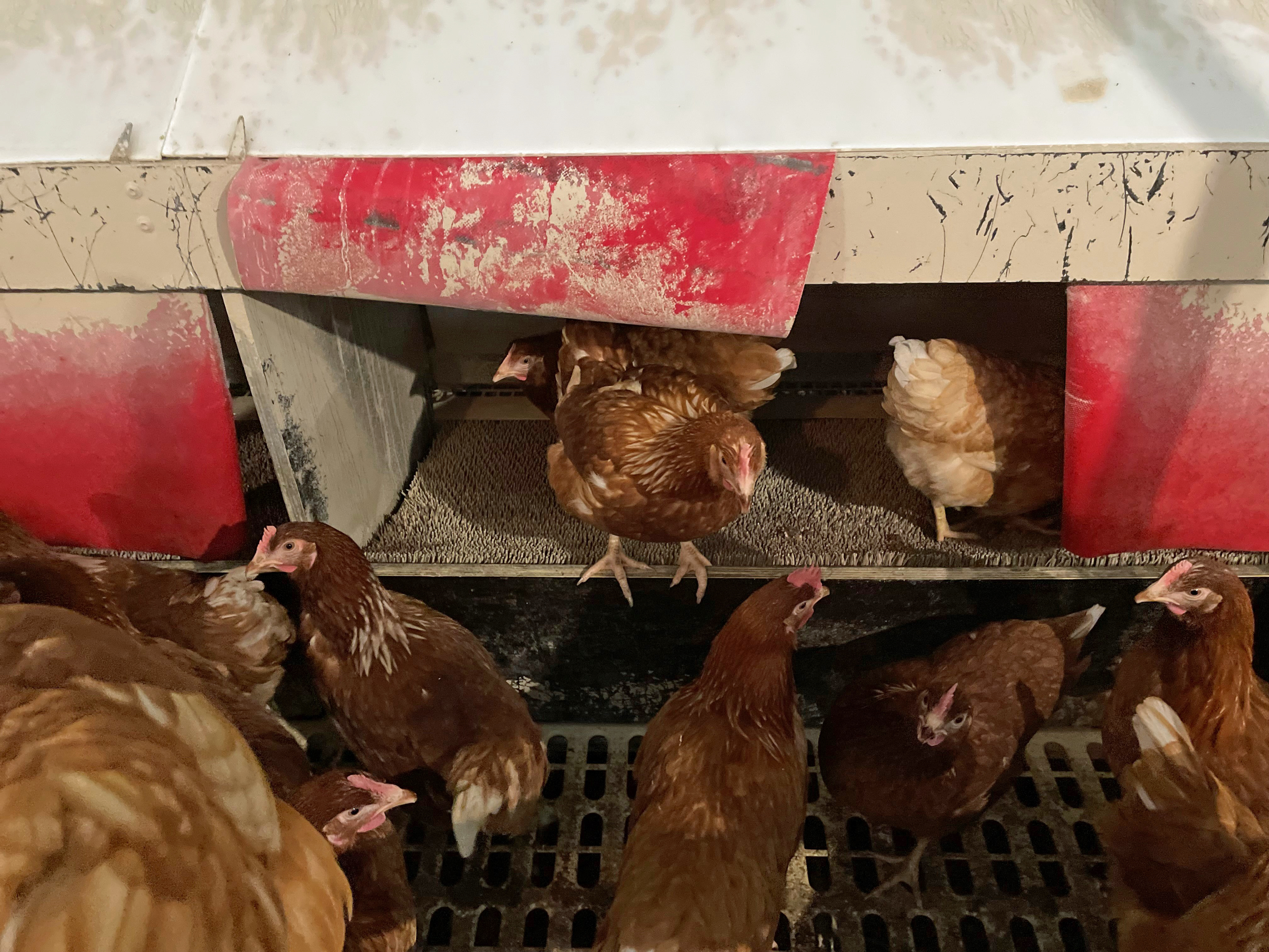 Advantages: Reduces bacterial growth in the facility compared to organic litter substrates; Lower surface temperature; Allows for dust bathing behaviour.